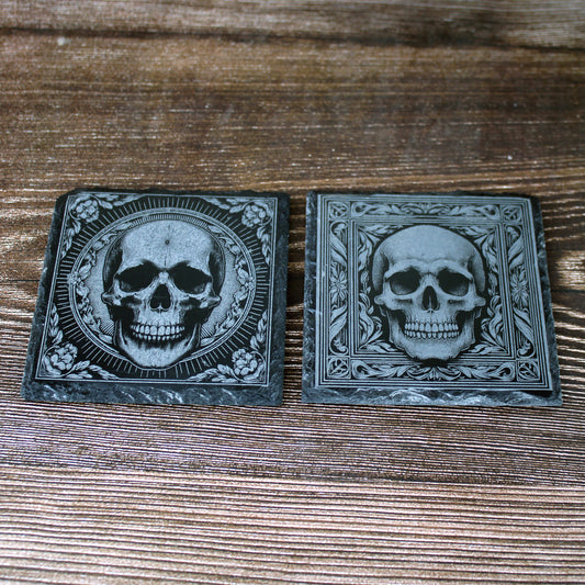 Pair of Slate Coasters - Elaborate skull design